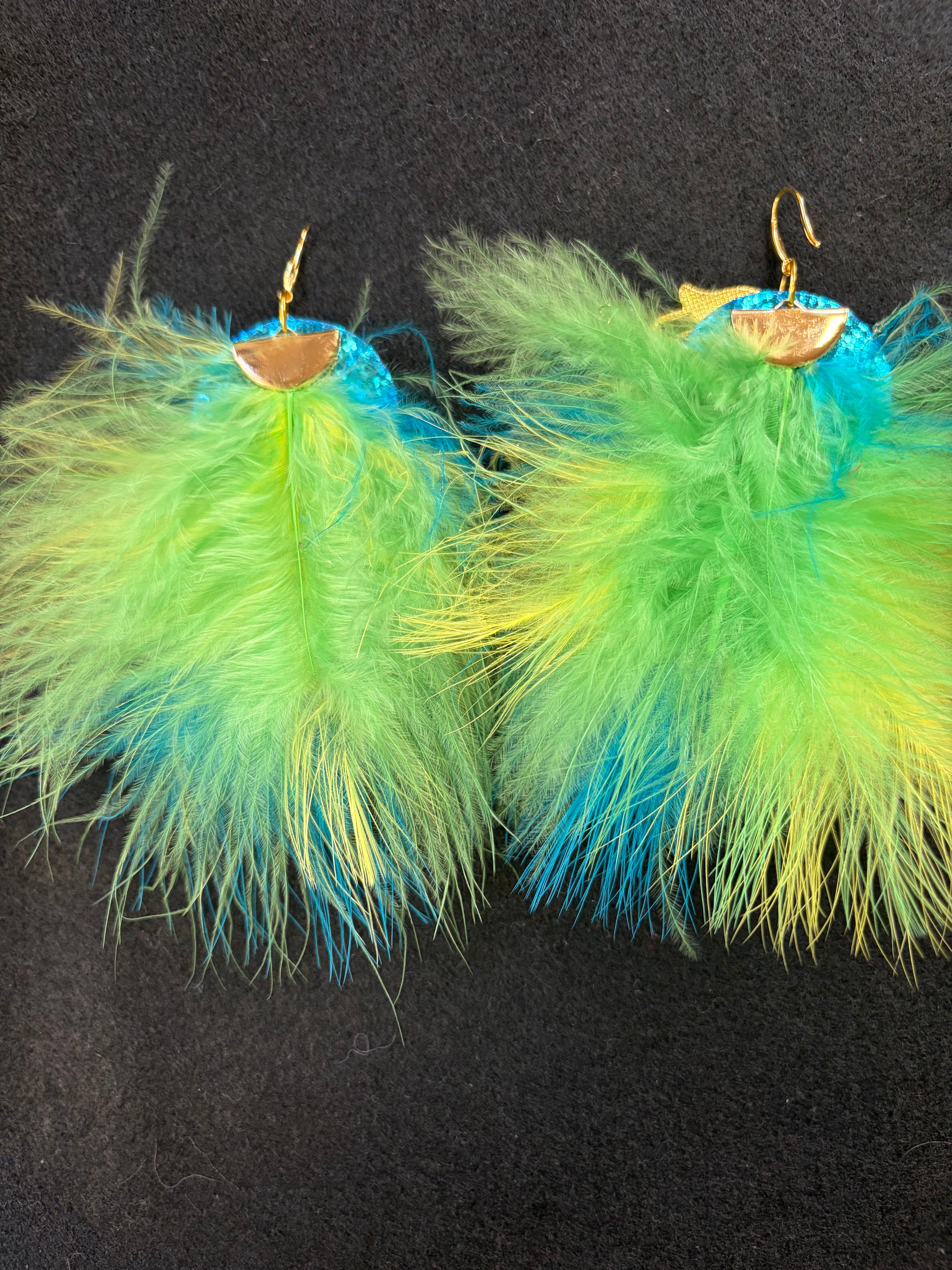 そしてふわふわ3色フェザーでゴージャスな大ぶりピアス