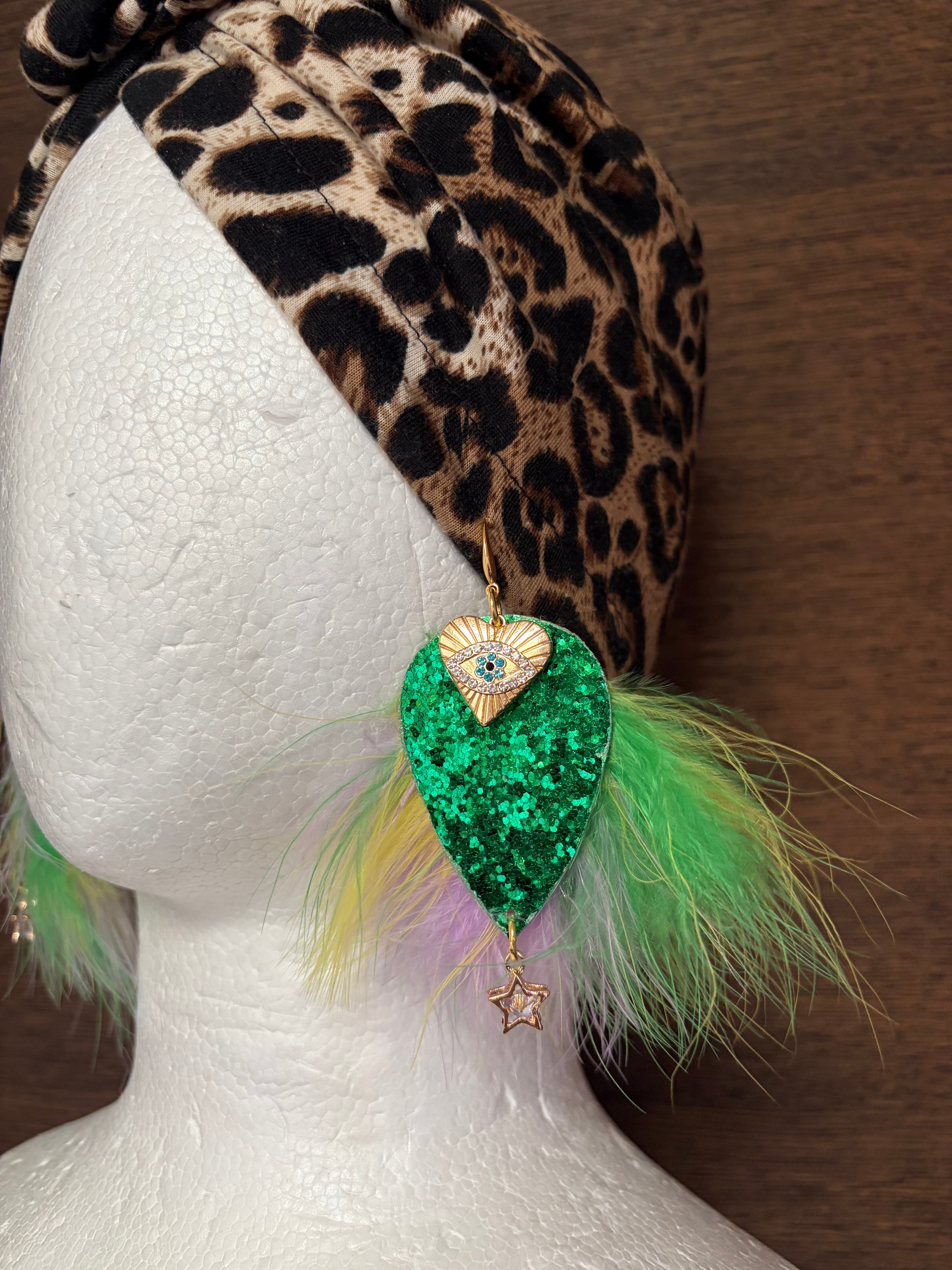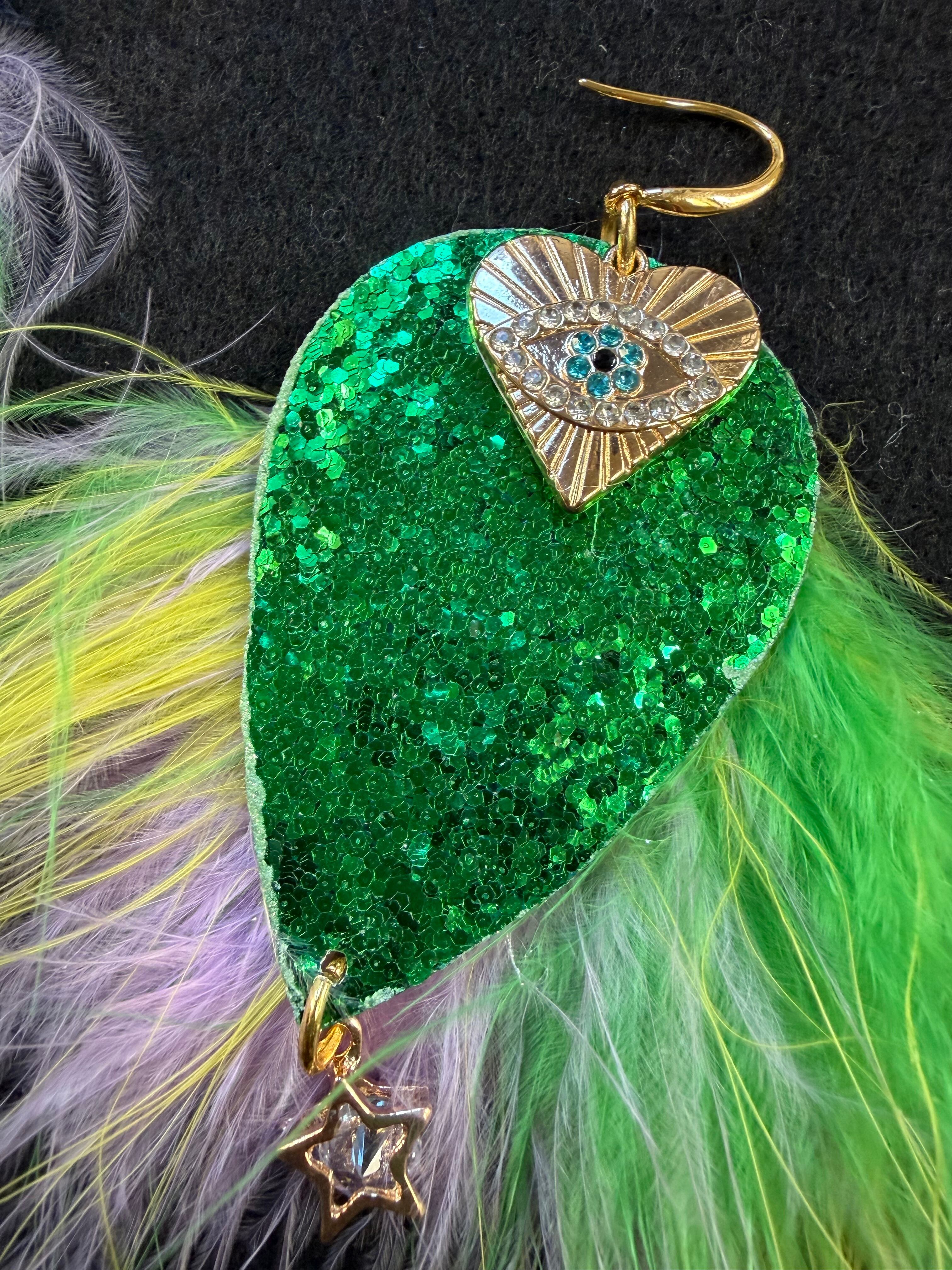 そしてふわふわ3色フェザーでゴージャスな大ぶりピアス