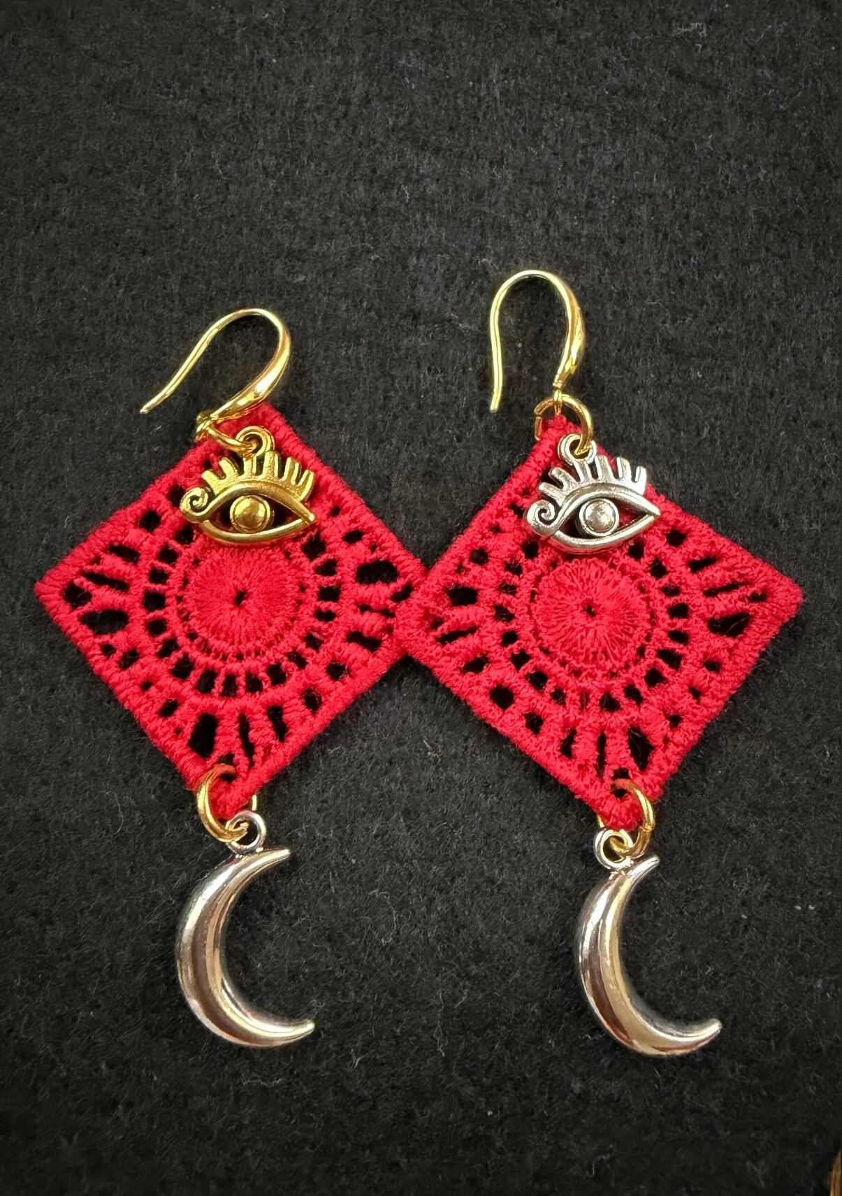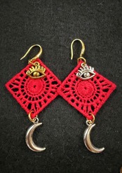 スクェアのクロシェ編みとお目目&三日月が可愛いearringを入荷しました。