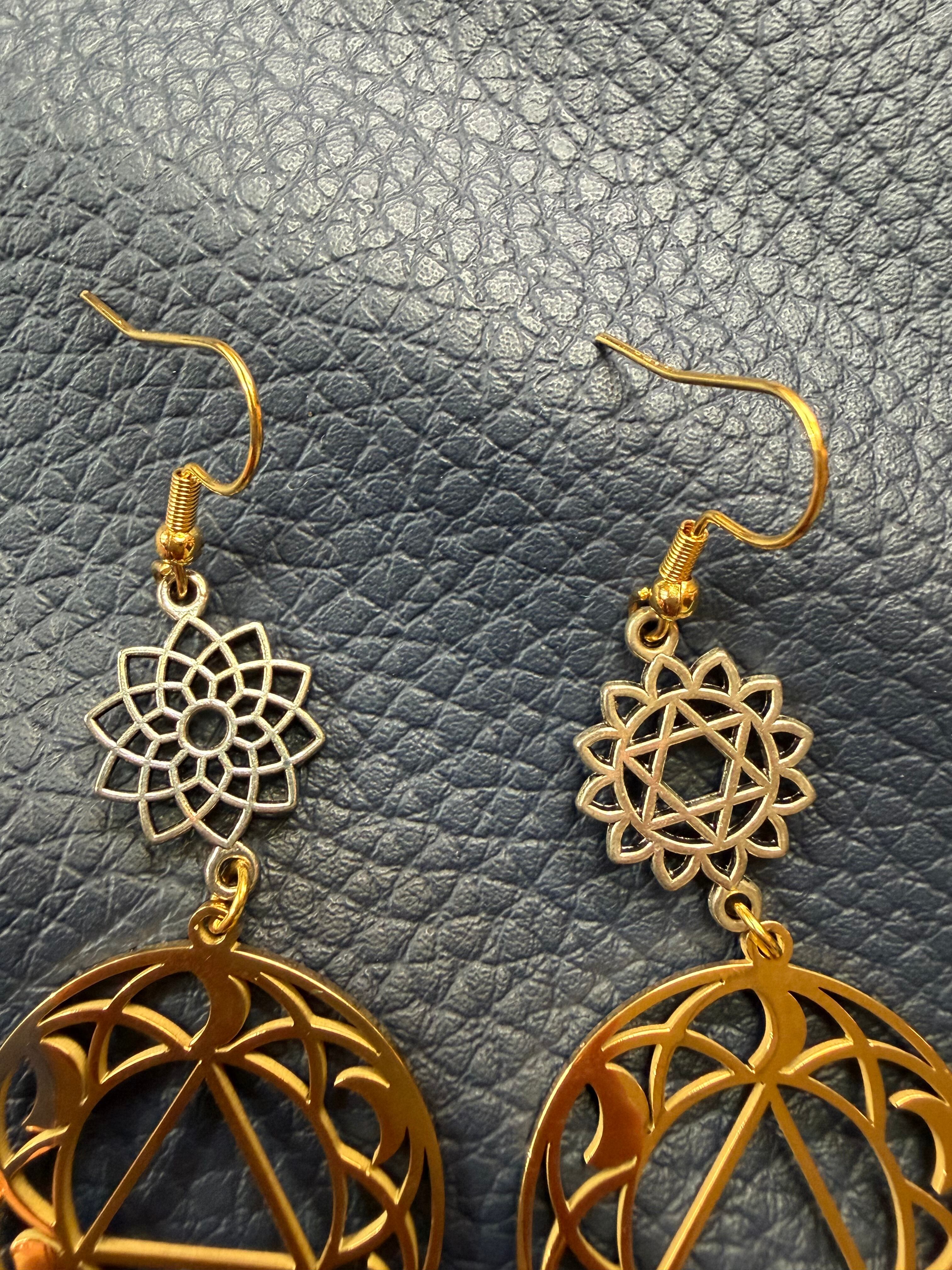 月の満ち欠けとお花マンダラのチャームがクールなearring