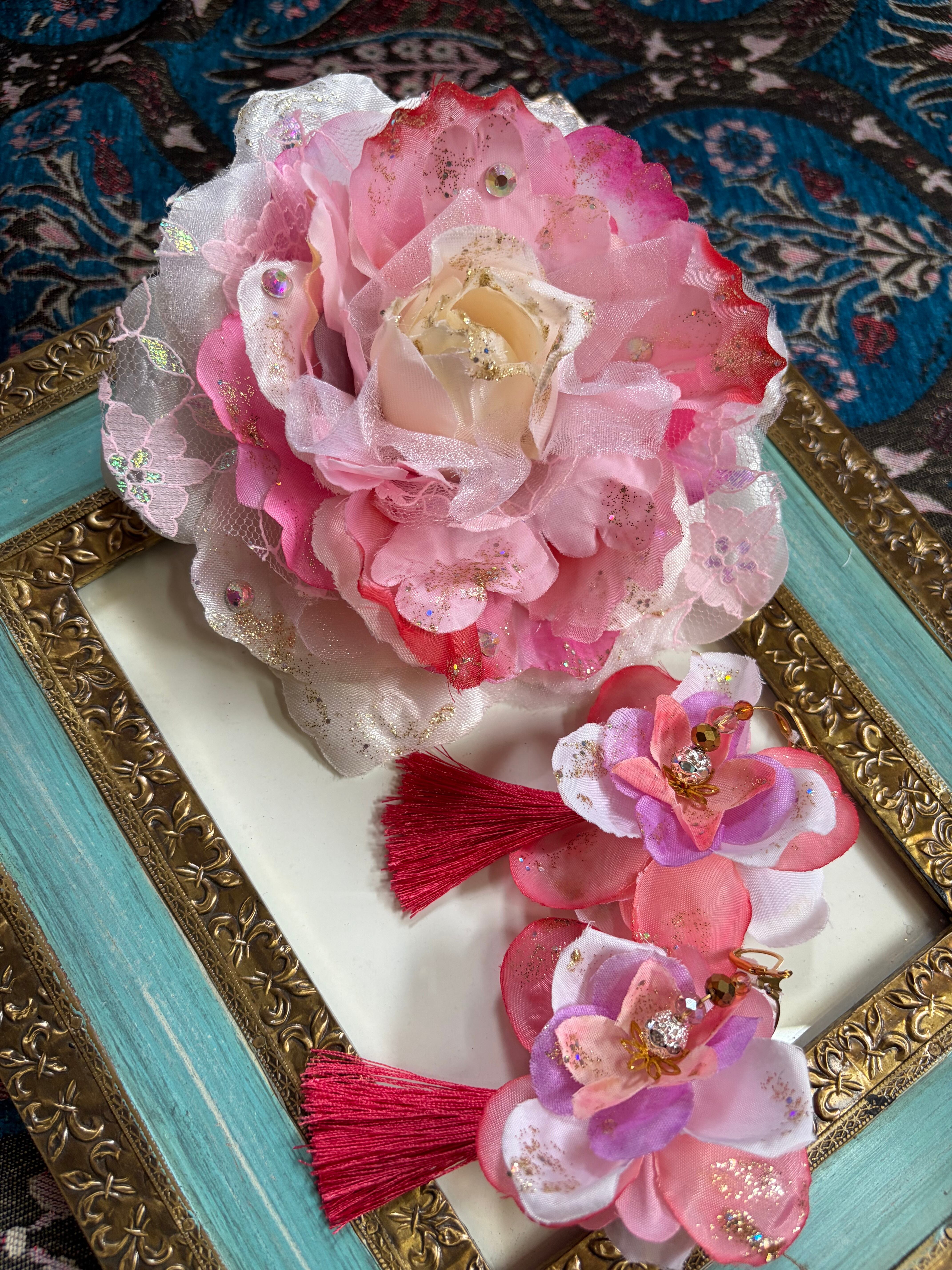 ハンドメイドコサージュ、ベリーダンス、フラメンコ、ダンス衣装、舞台衣装、大きいコサージュ、和装、パーティー、プレゼント