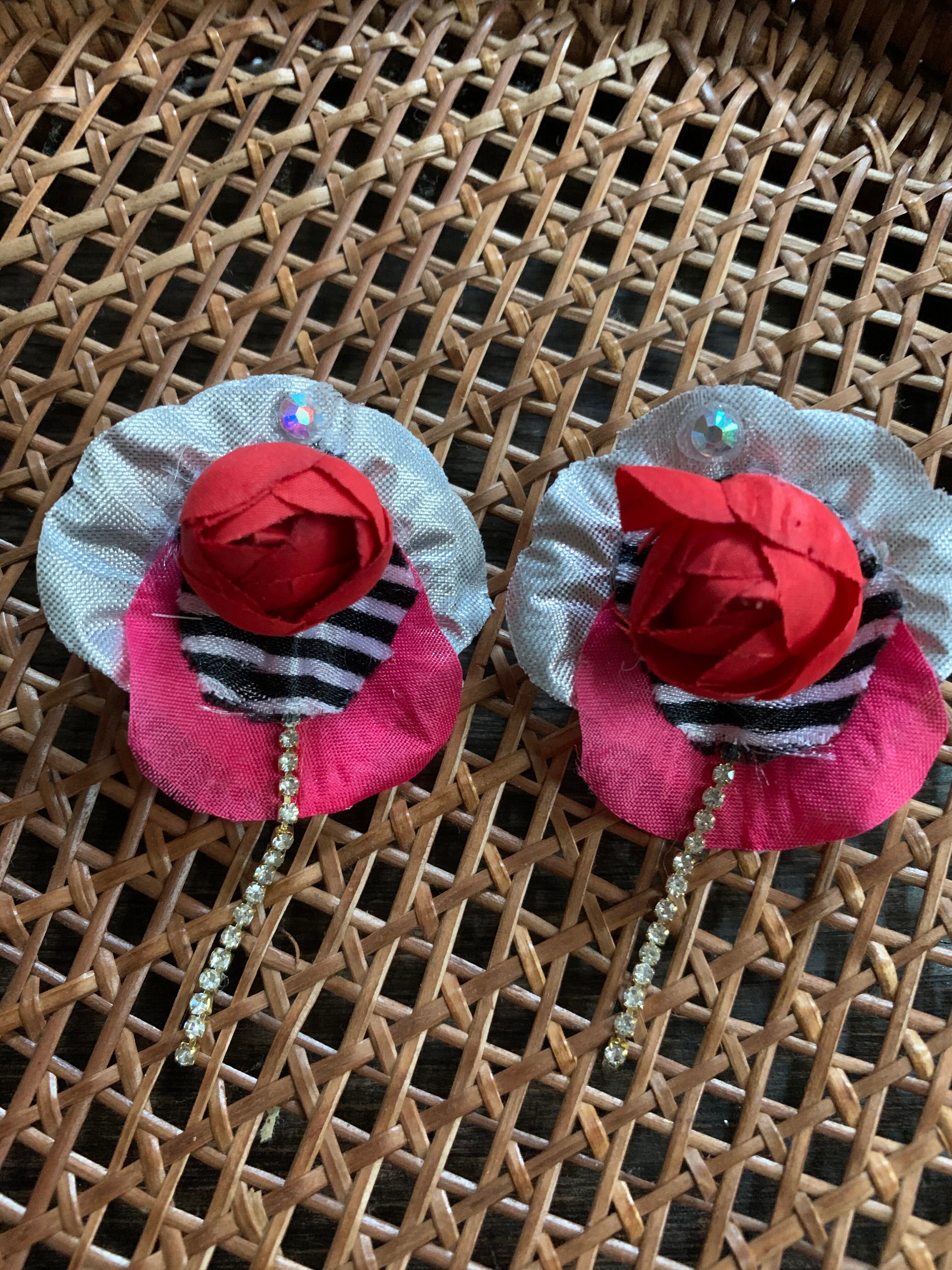 シルバーカラーとショッキングピンクの花びらに乗った薔薇の蕾。