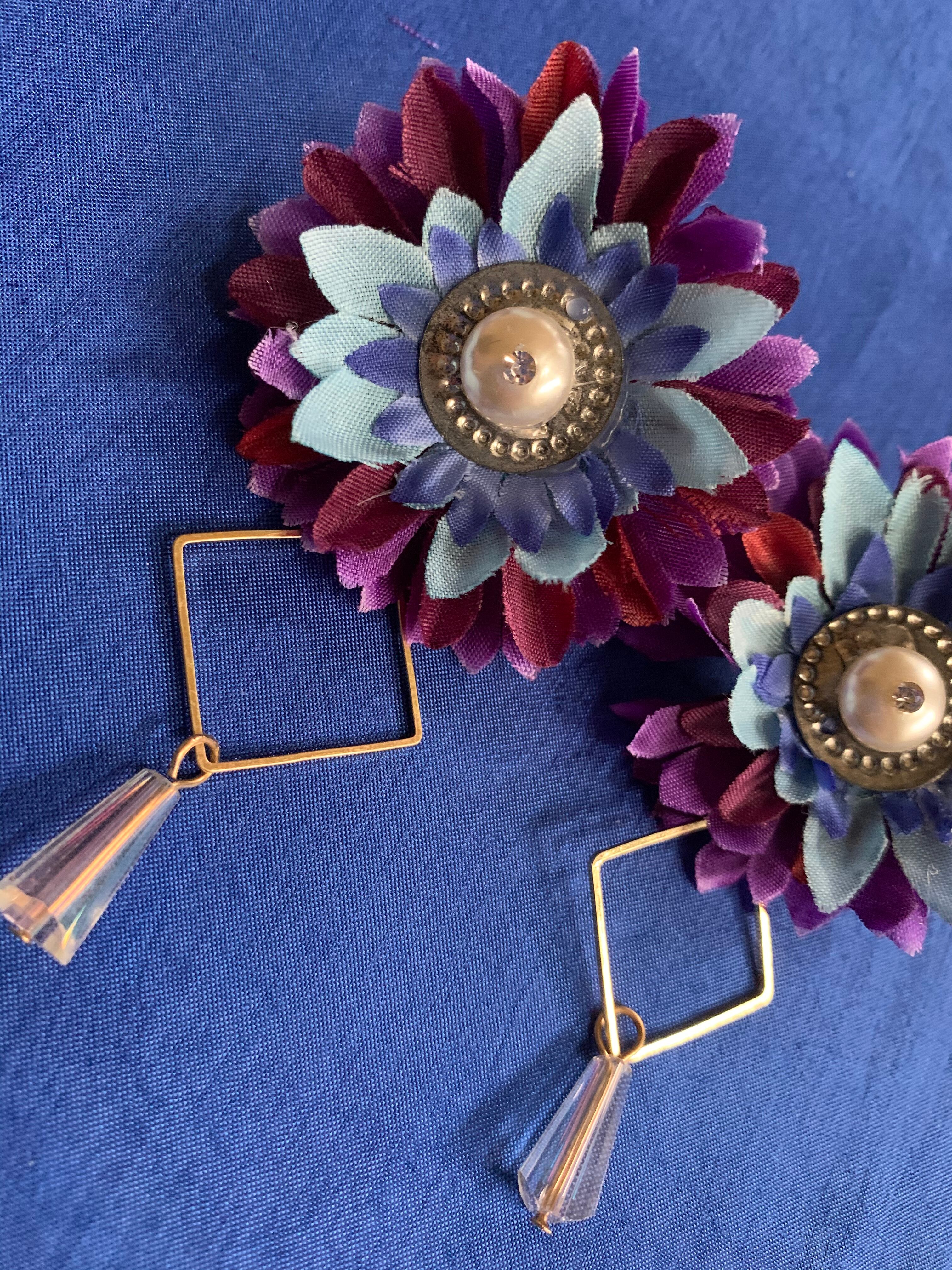 お花の中心にはシルバーコインにパールのパーツがついてます。