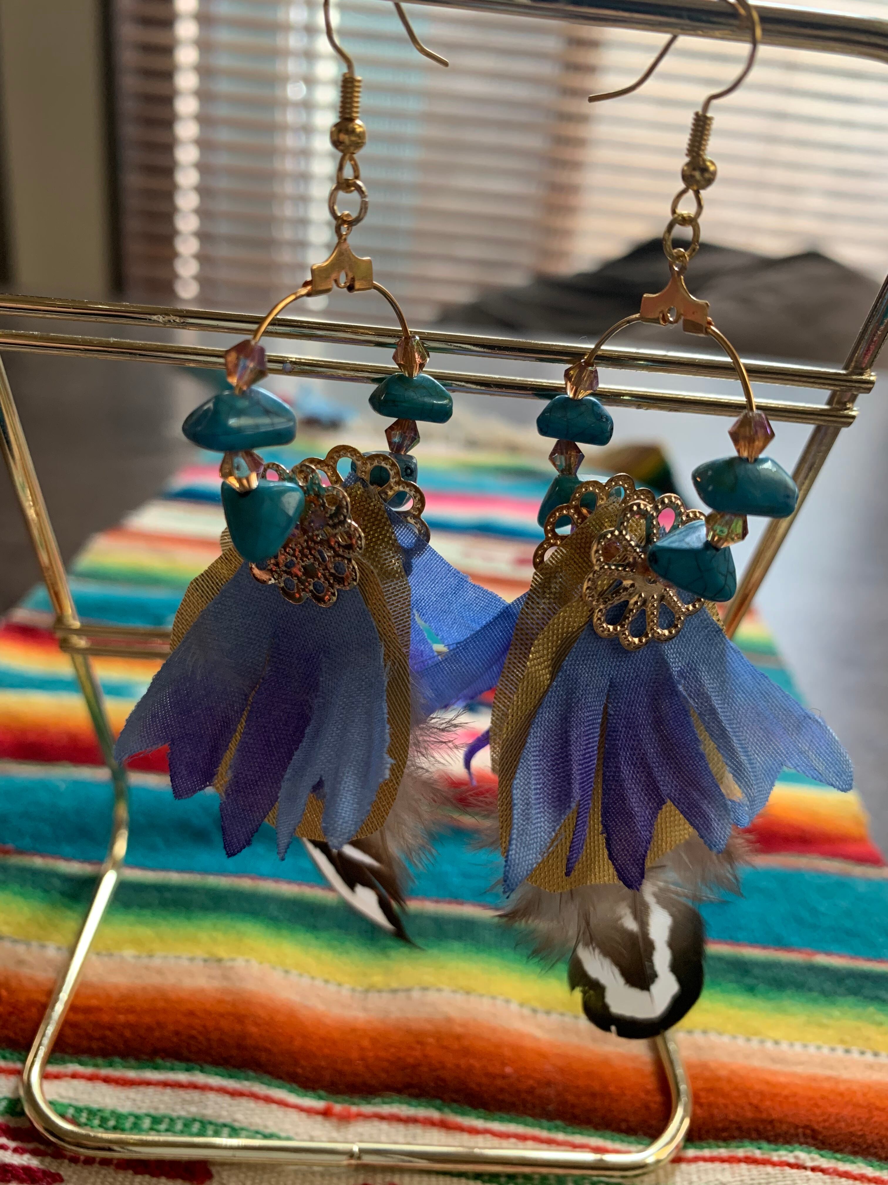 フェザーとターコイズビーズとの相性も良く、エスニックな雰囲気。
