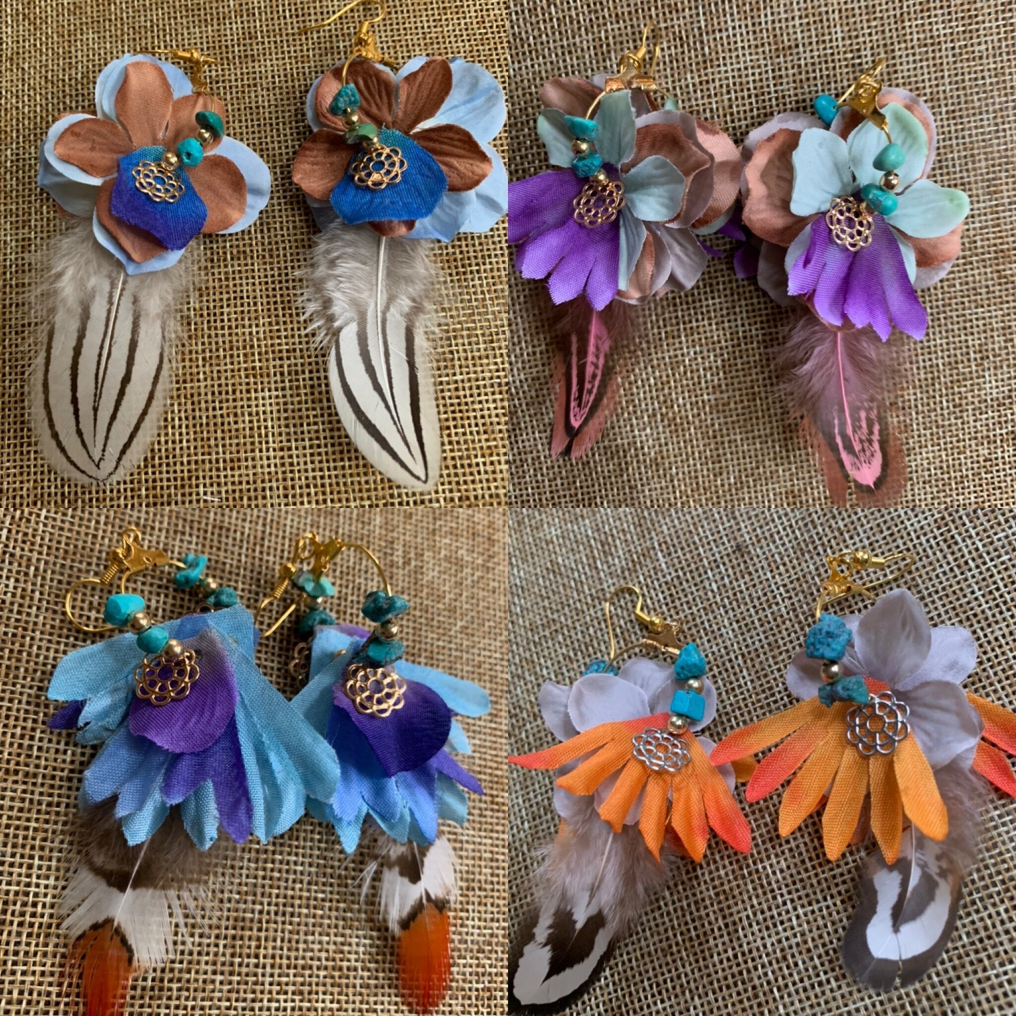 カラフルフェザーのhumming bird earringを再入荷しました。