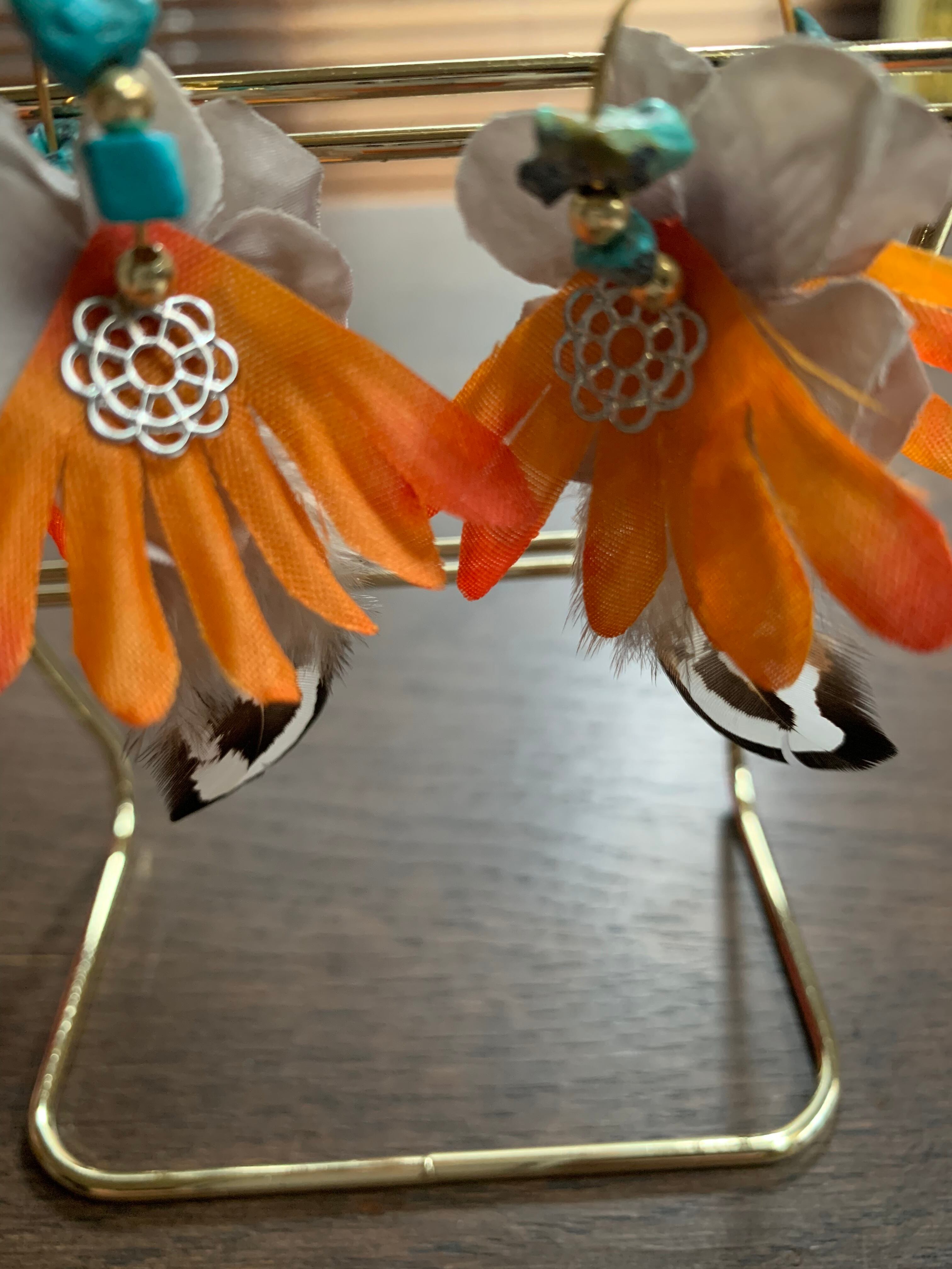 フェザーとターコイズビーズとの相性も良く、エスニックな雰囲気。
