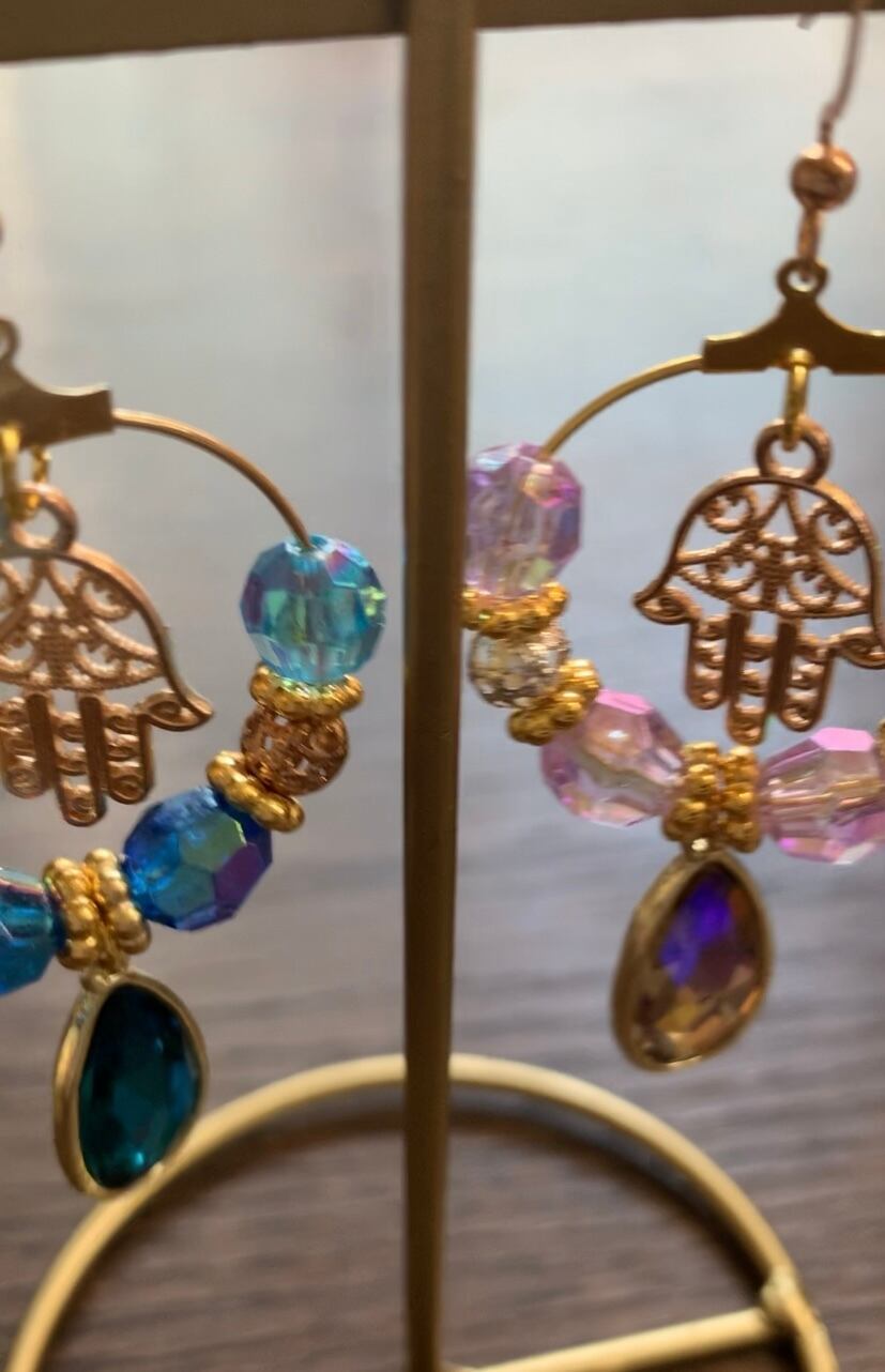 ハンドメイドアクセサリー ハンドメイドピアス ファティマ ハムサ フープーピアス キラキラピアス ラッキーモチーフ ハッピーモチーフ プレゼントにも人気です