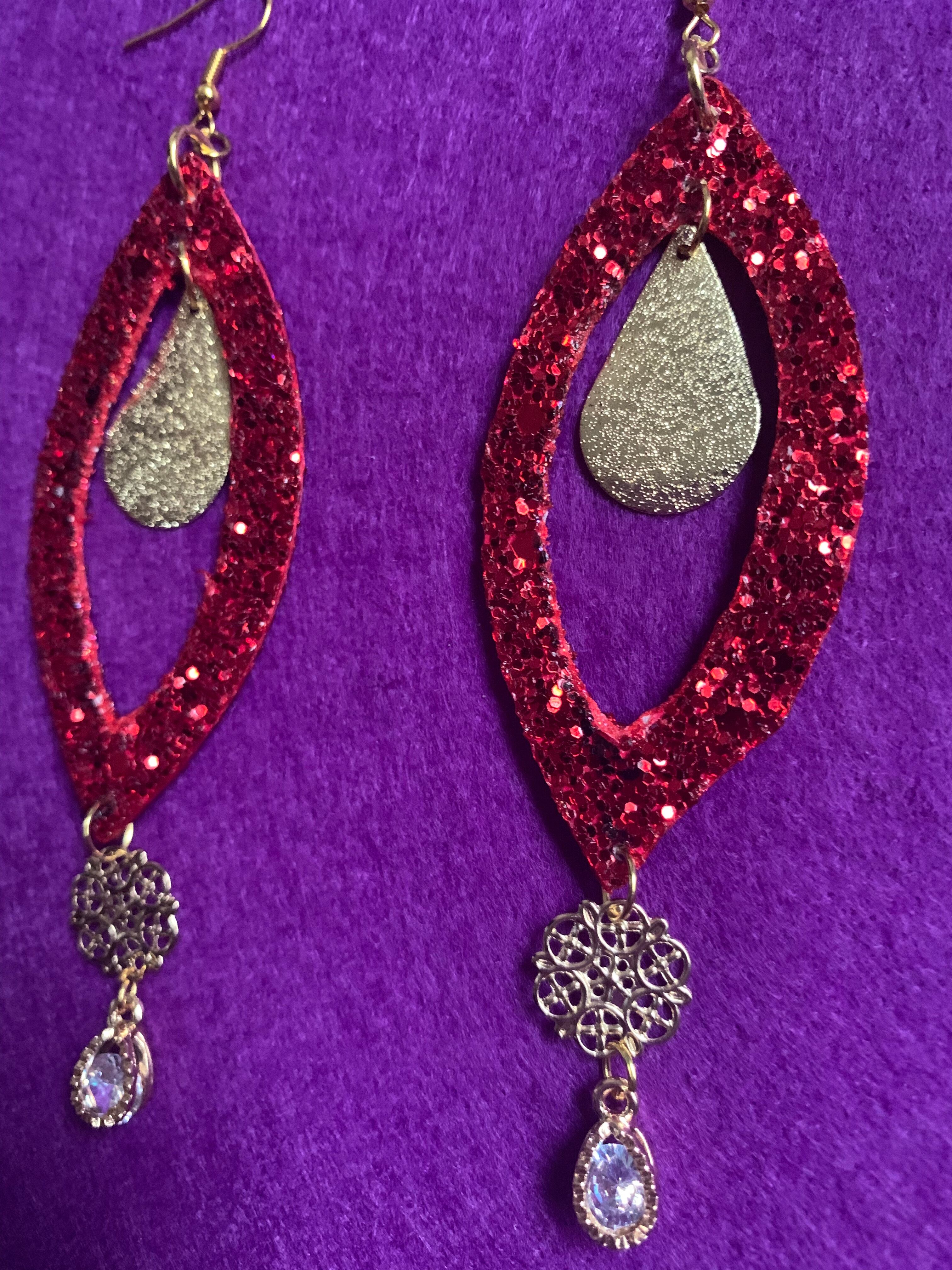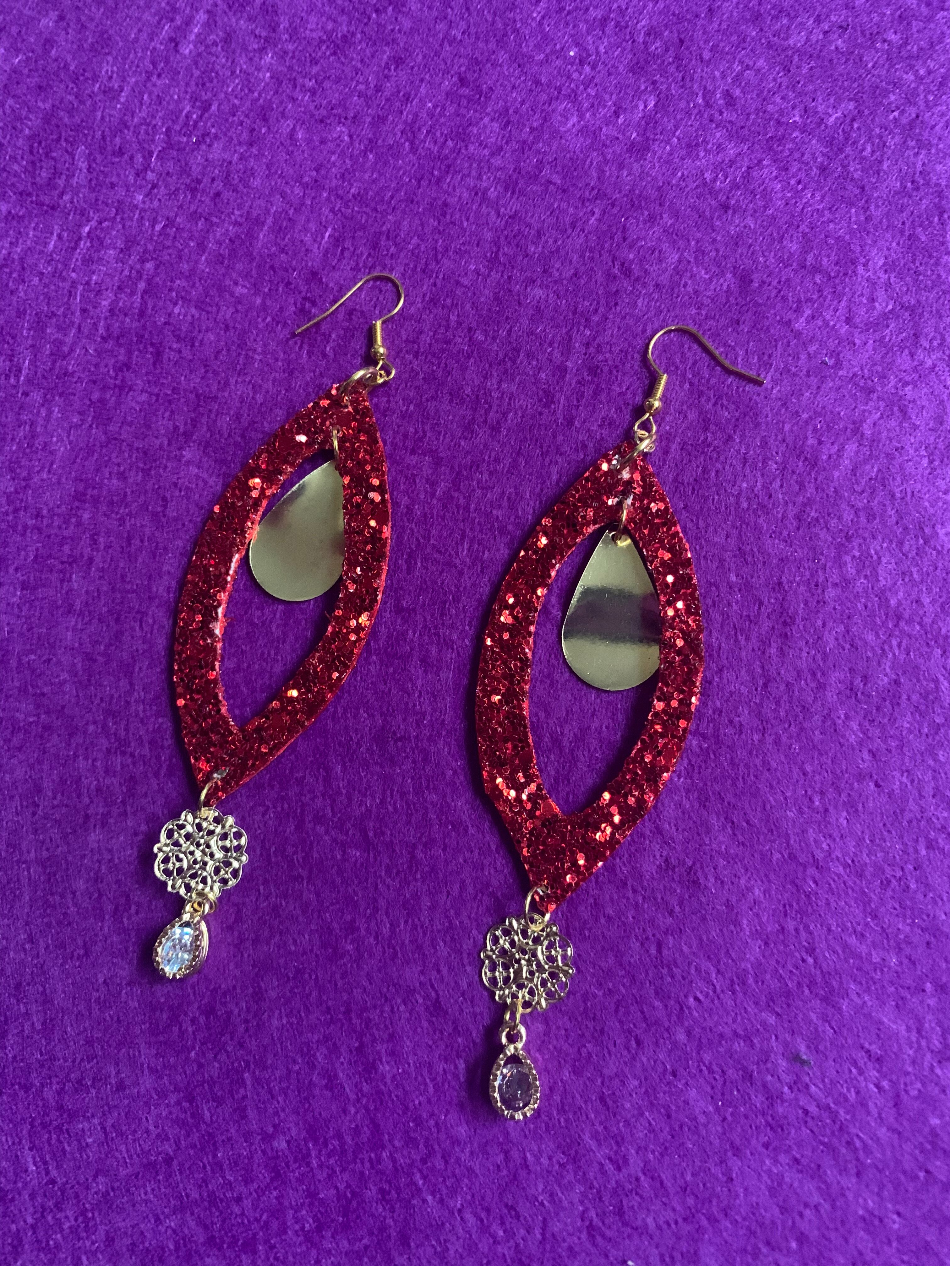 レッド&ゴールドカラーで存在感のあるピアスです。