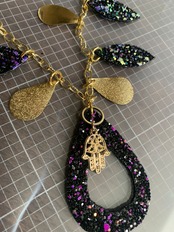 一番中心の部分の飾り、雫型の縦長さ約5.7㎝、ハムサ約1.7㎝