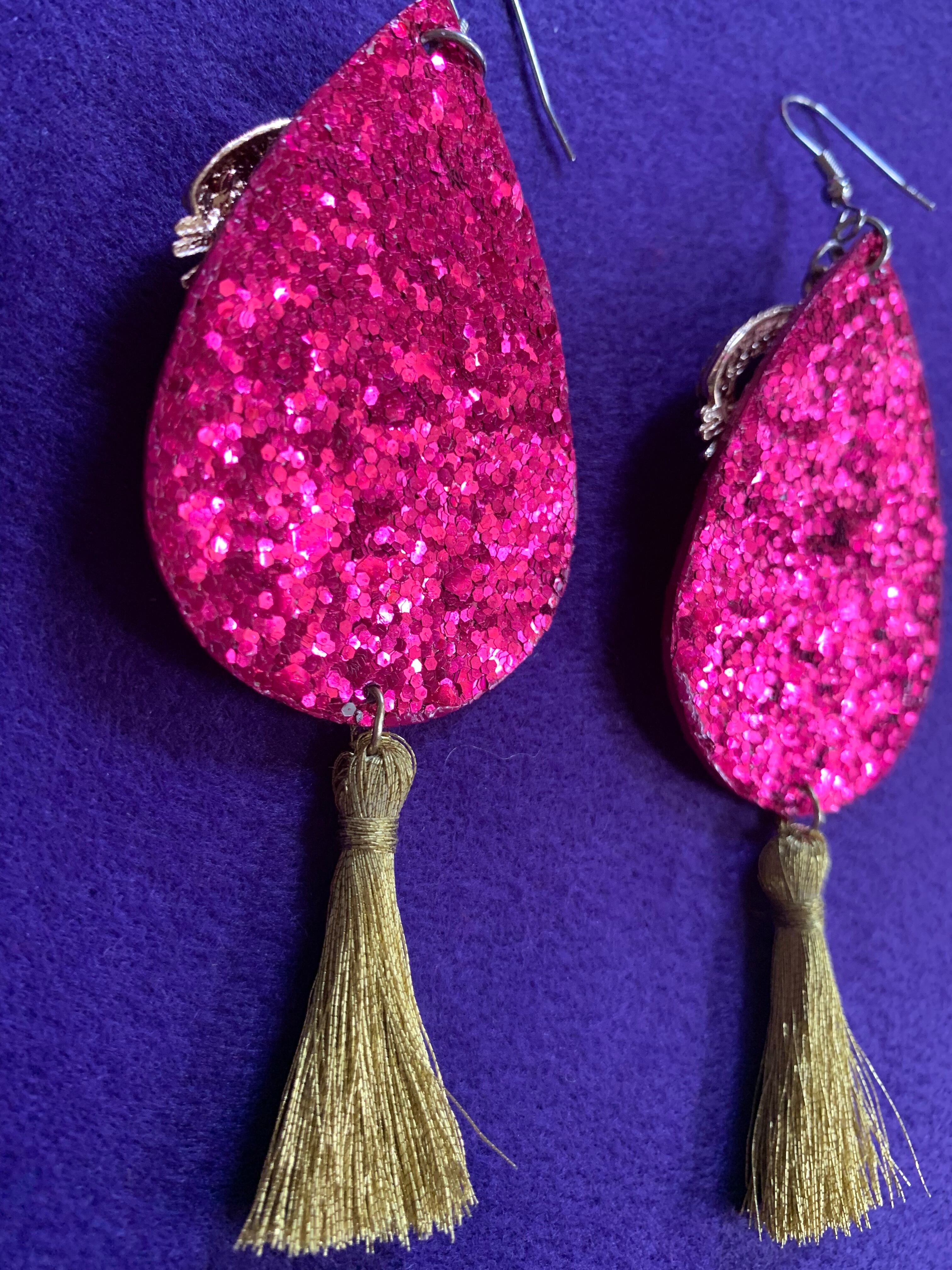 大ぶりでピンク&ゴールドタッセルのインパクトカラー合わせに、目玉!