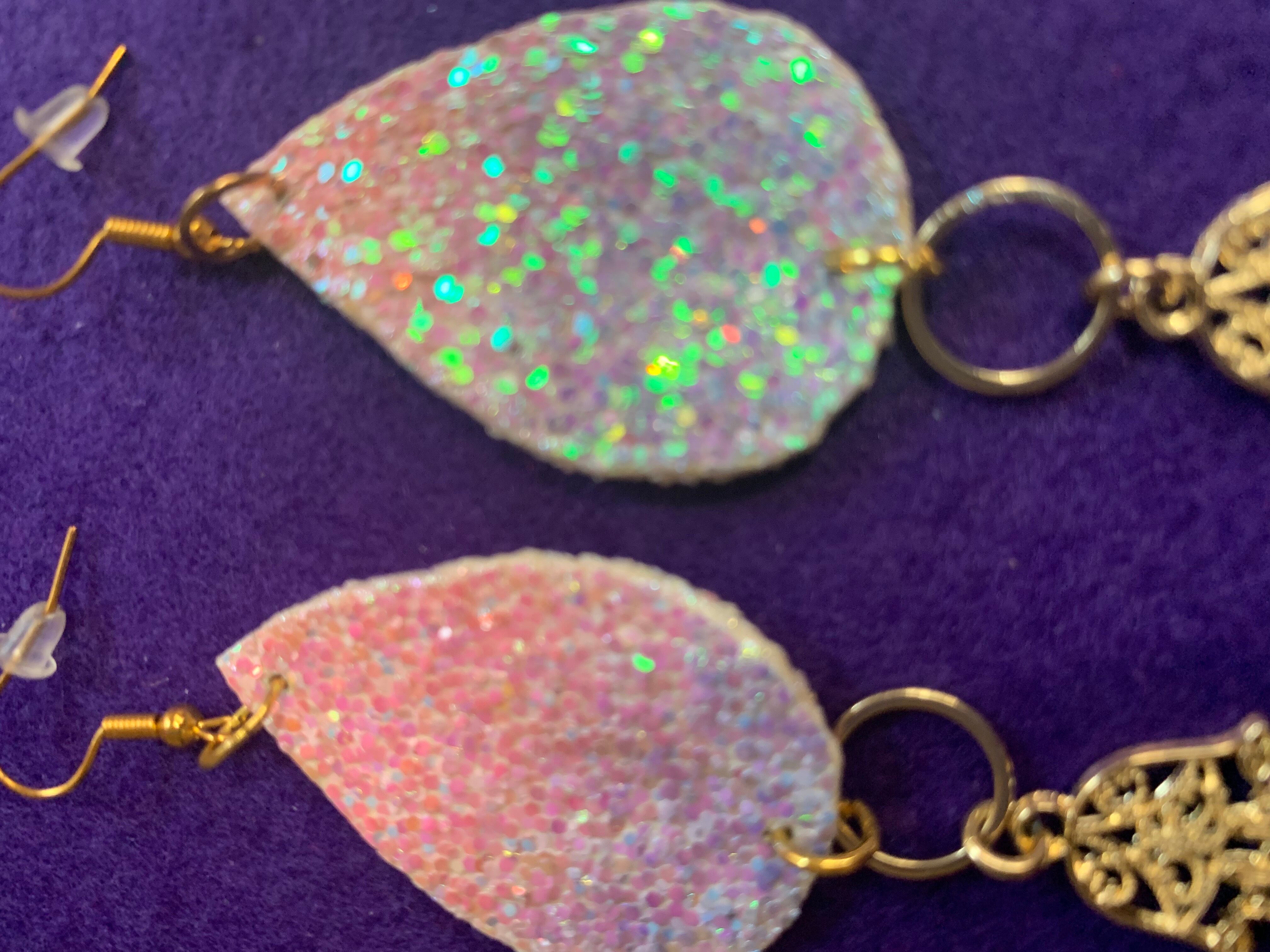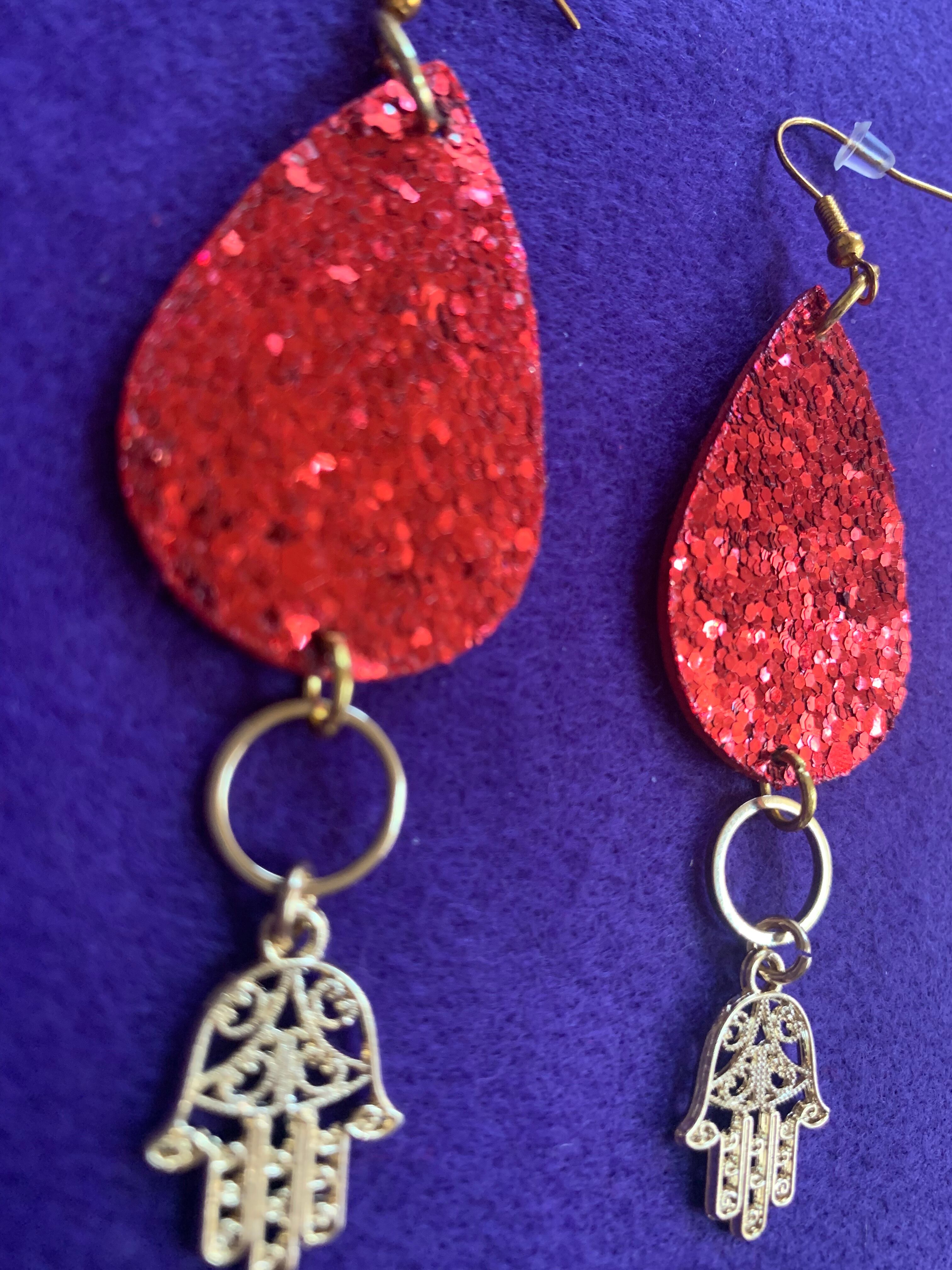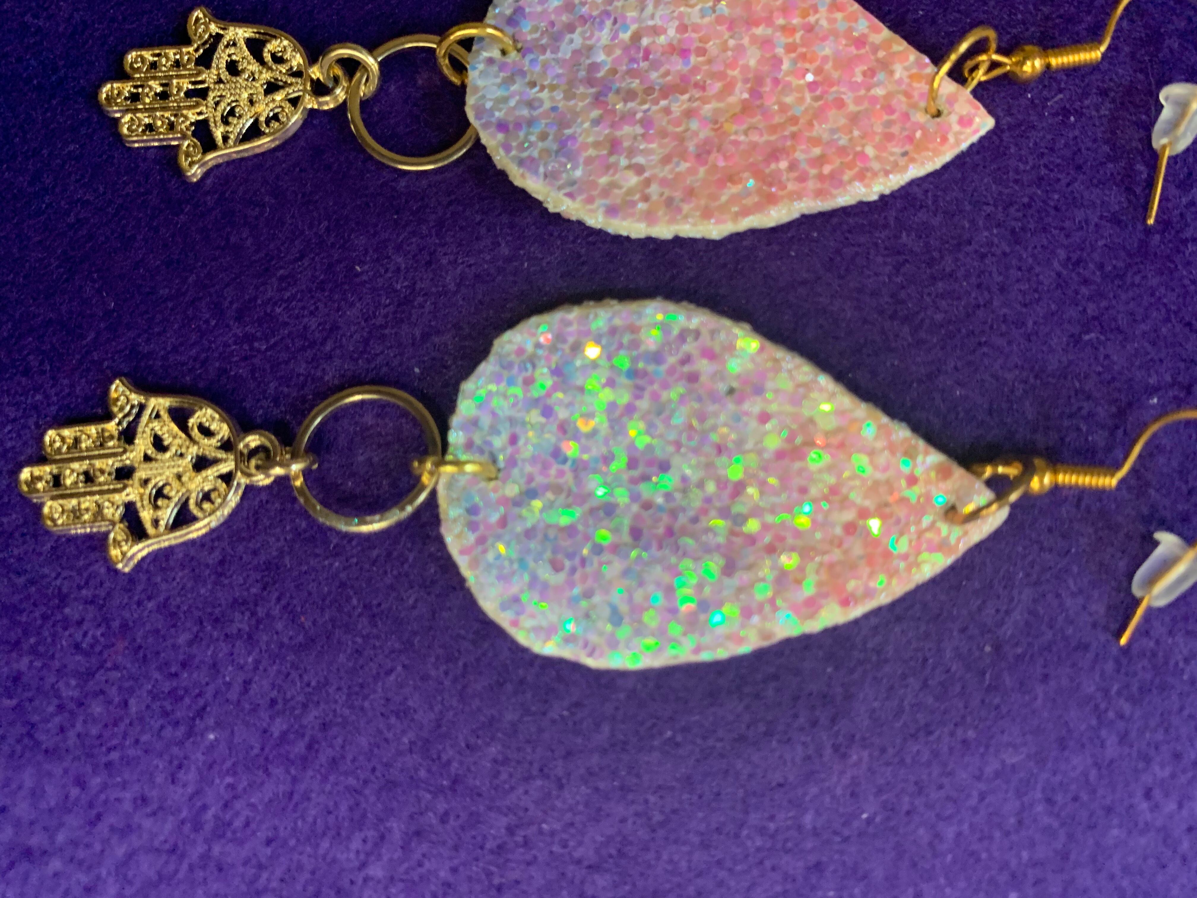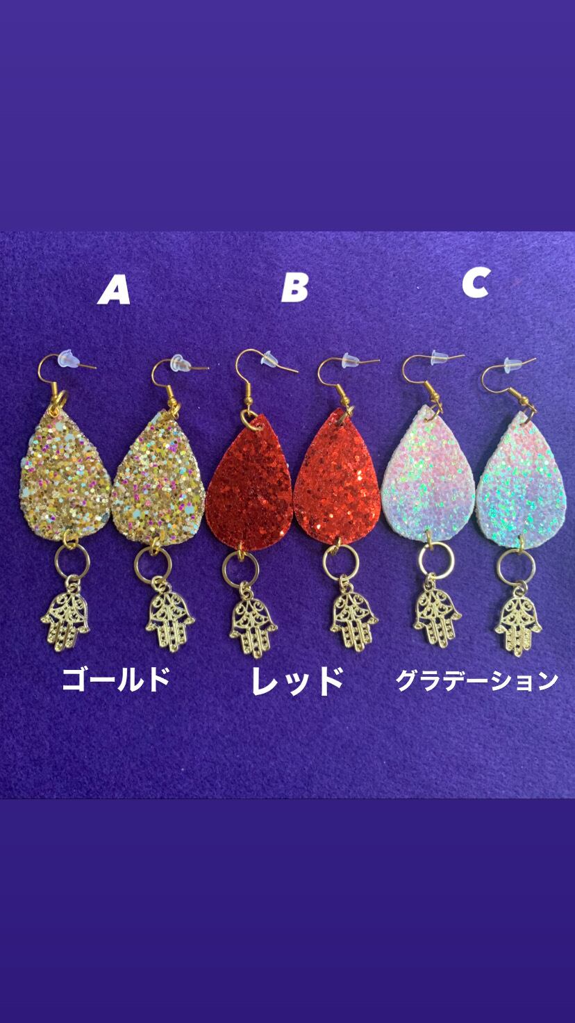 雫型のキラキララメパーツに、サークル&ファティマの手を施して、揺れるハンド。