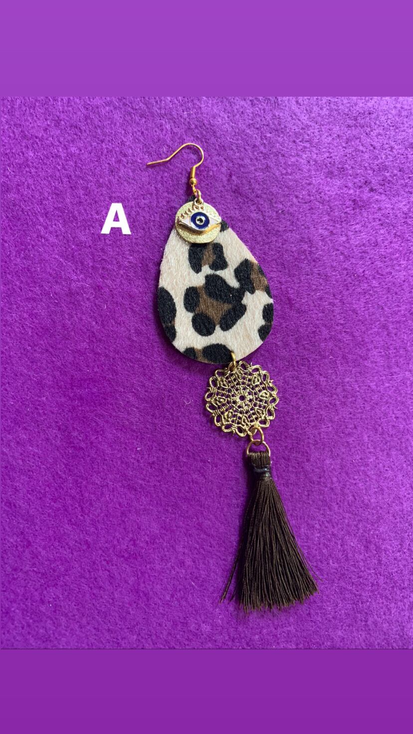 レオパード柄のフェイクハラコ調の雫型に