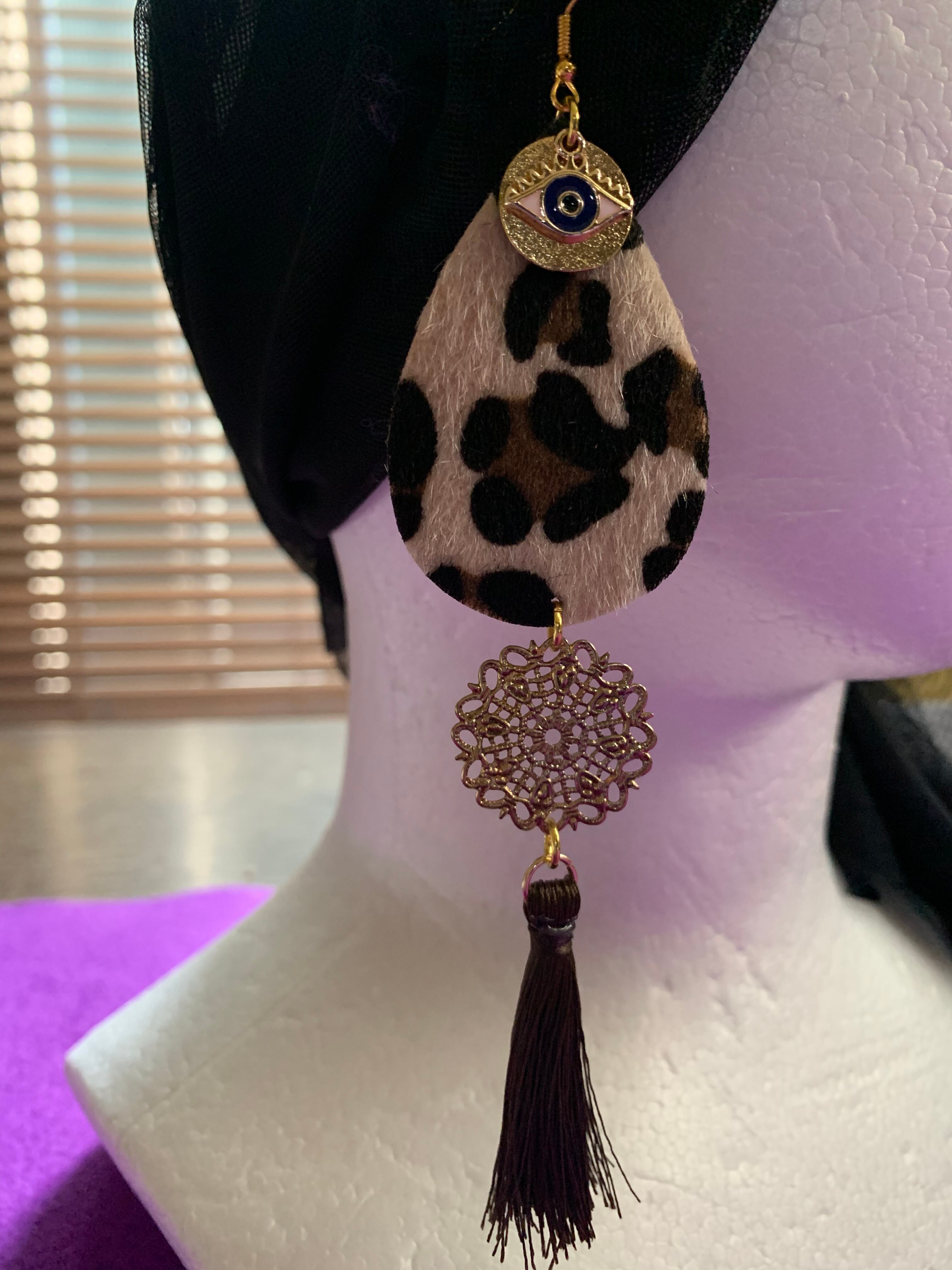 Leopard☆tassel long earring