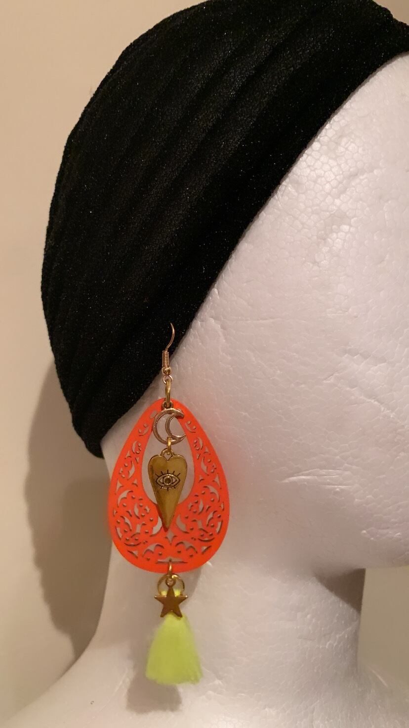 ネオンイエローカラーのタッセルに星チャームがついたかわいいなピアスです。